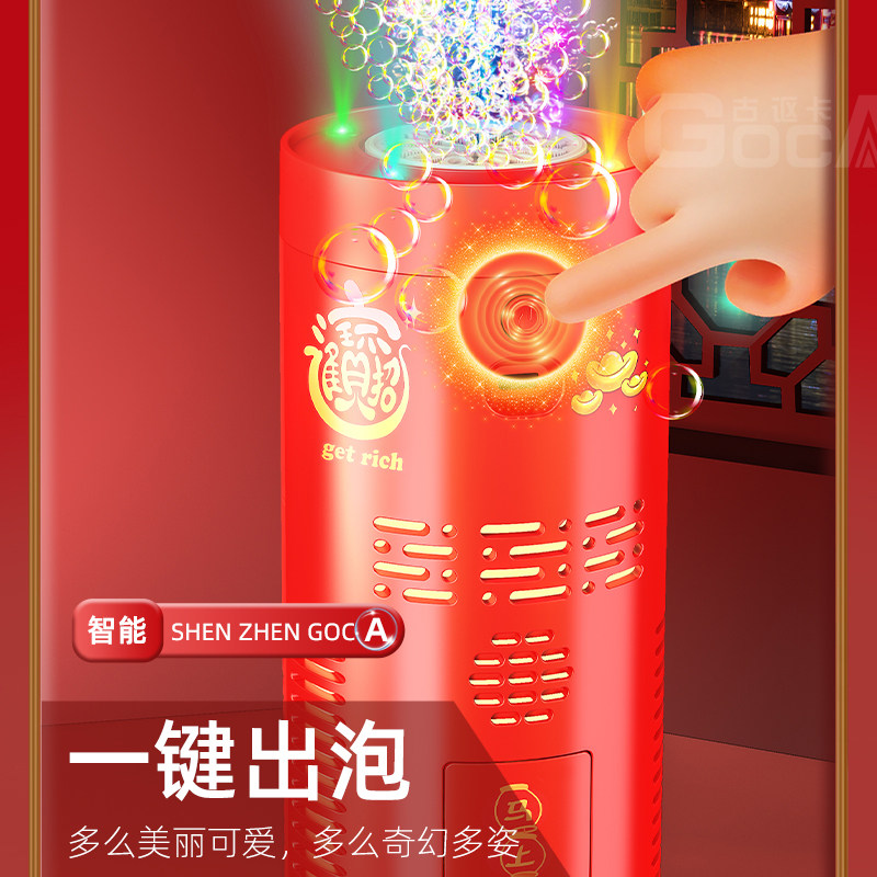 乐乐鱼2026新款电动新年烟花泡泡机醒舞狮灯笼儿童玩具手持加特林