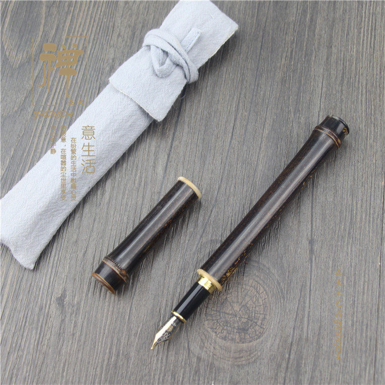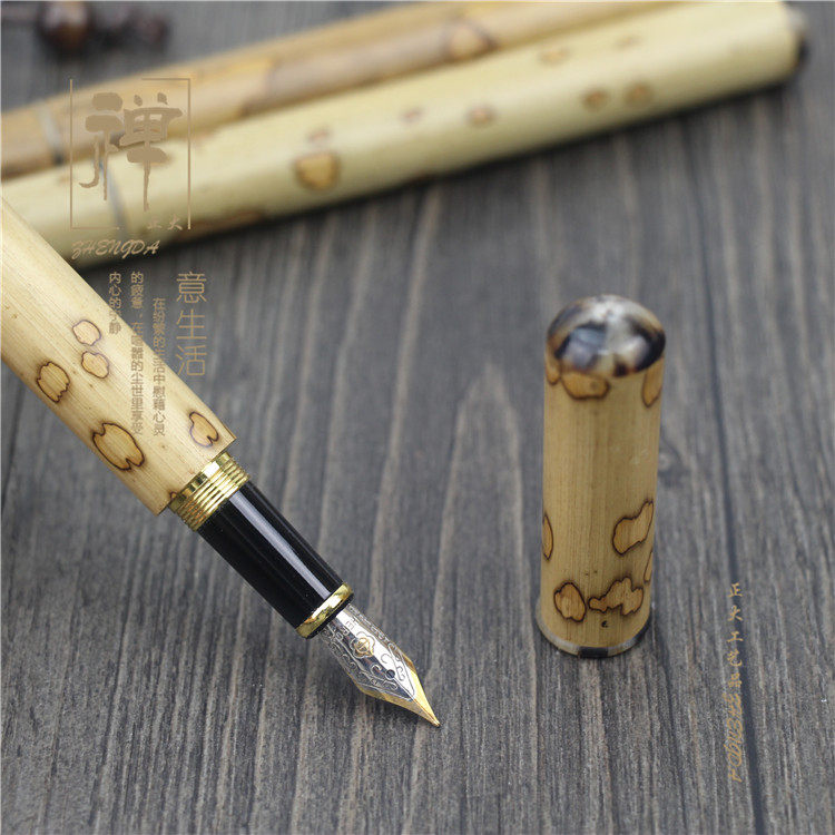 正大 天然蝴蝶竹镶牛角高档钢笔 英雄钢笔 竹制笔 商务签字笔礼品