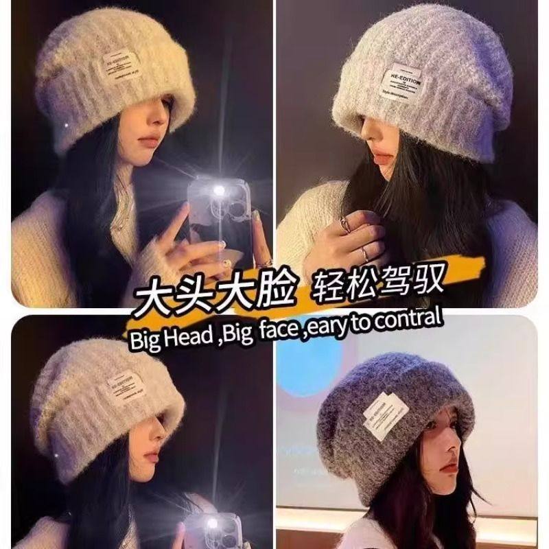 帽子冷帽冬女款2025新款毛线帽毛绒大头围保暖针织帽护耳帽显脸小