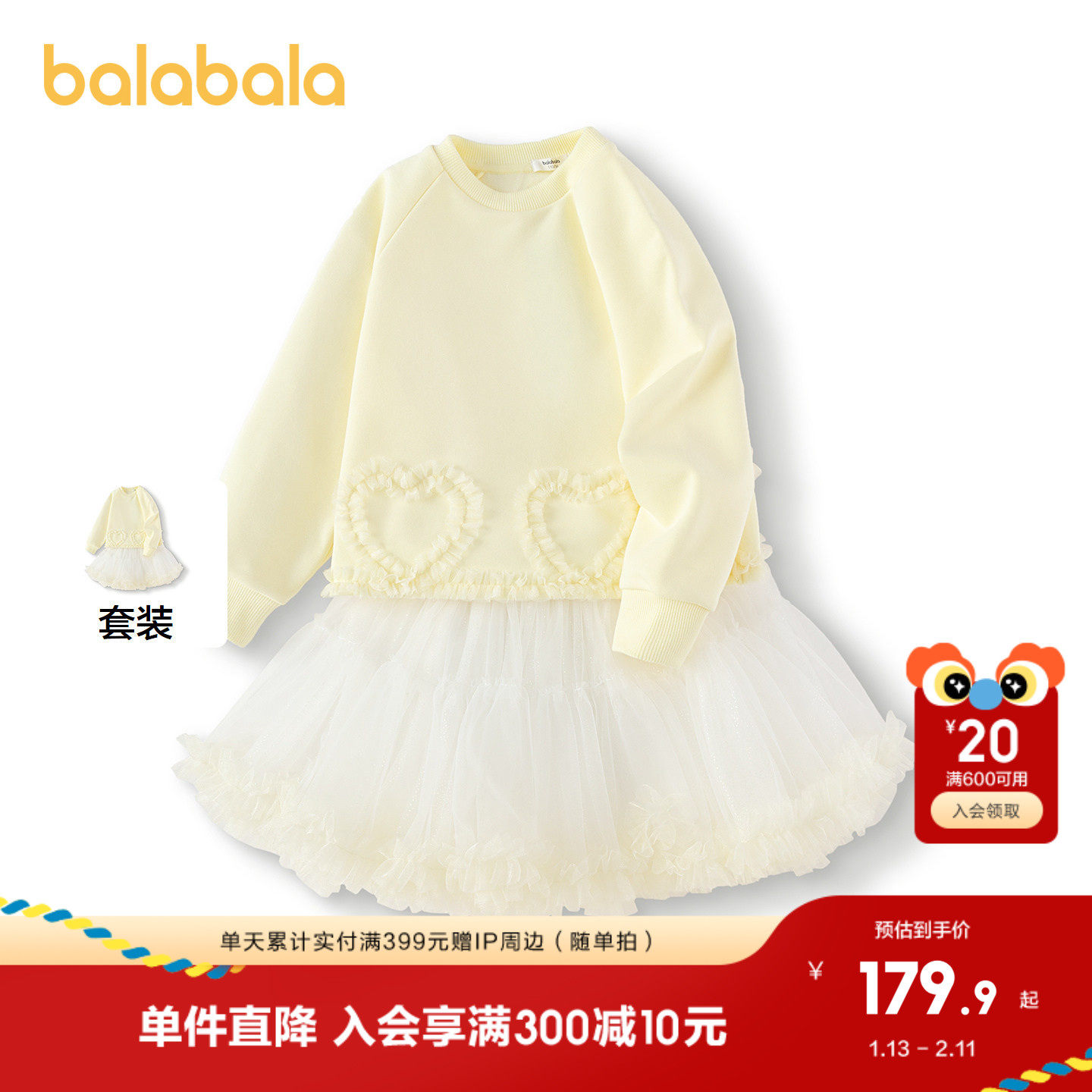 巴拉巴拉童装女童卫衣套装网纱裙两件套春装甜美可爱洋气小公主