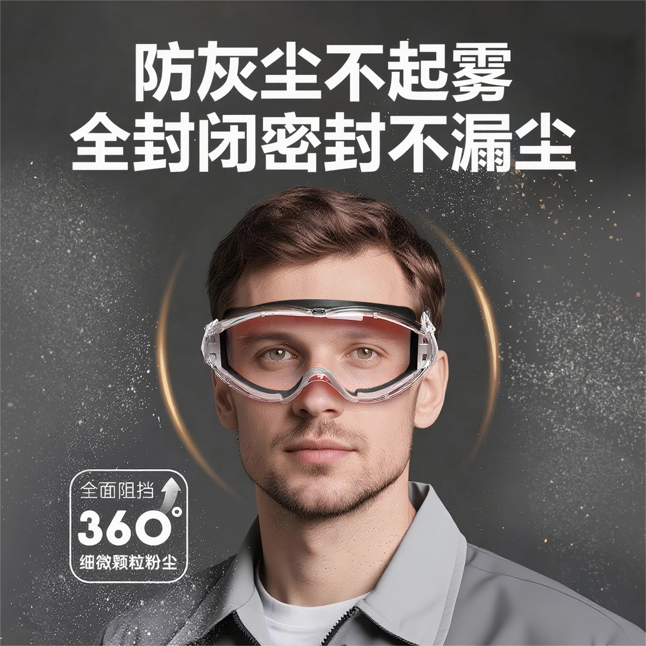护目镜防灰尘不起雾防尘眼镜劳保防飞溅硅胶防粉尘全脸全封闭高清