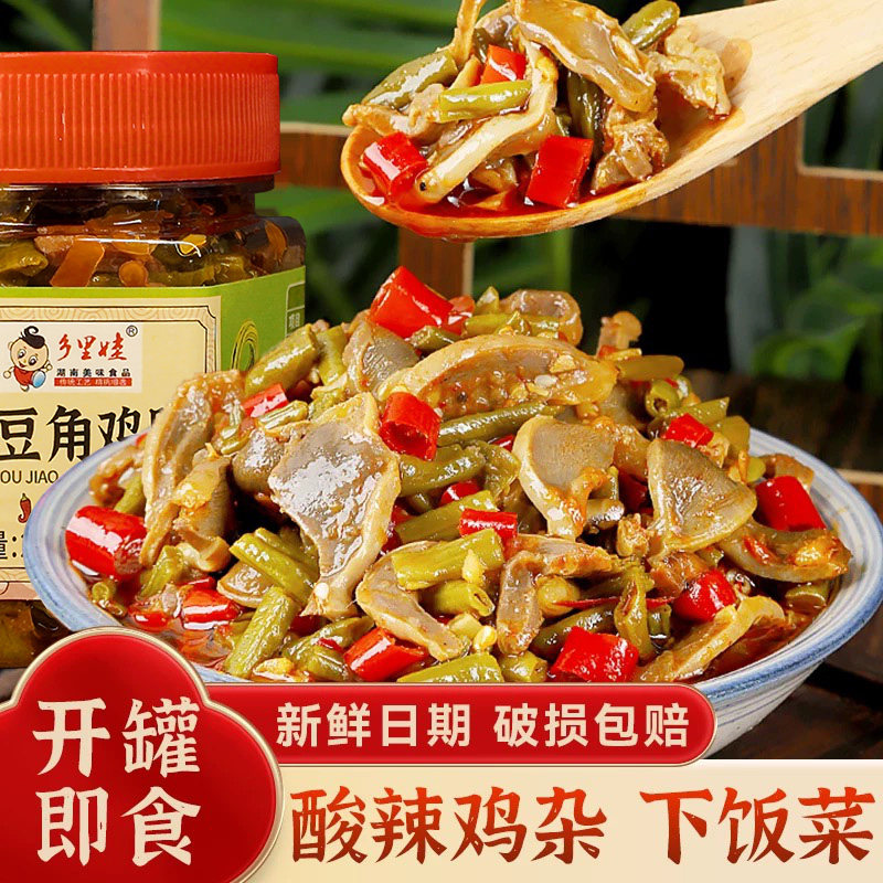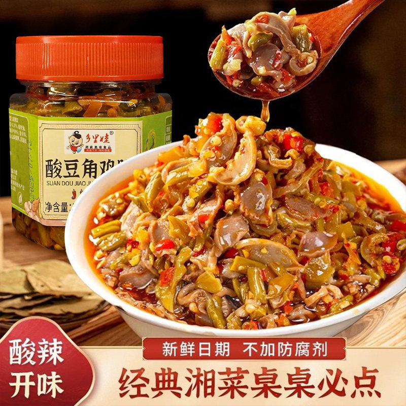 乡里娃酸辣鸡胗酸豆角湖南特产剁椒辣椒酱下饭菜香辣拌饭酱瓶装