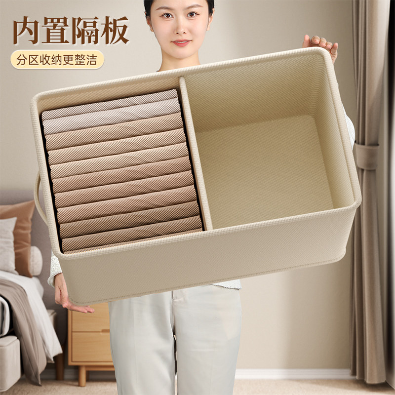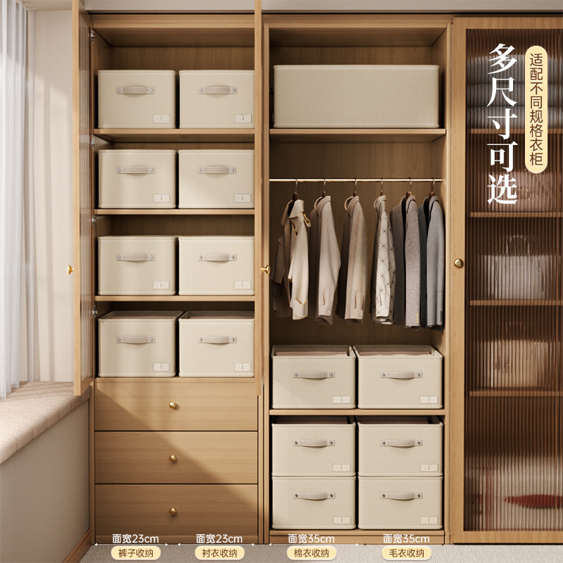 天山棉麻收纳筐衣柜收纳整理分层神器PP板可水洗衣服储物盒收纳箱