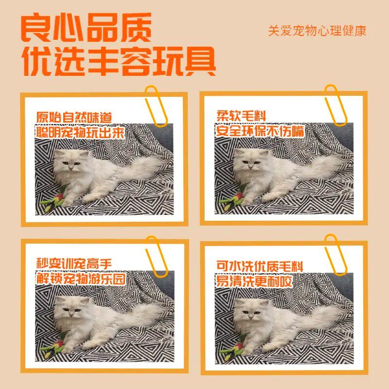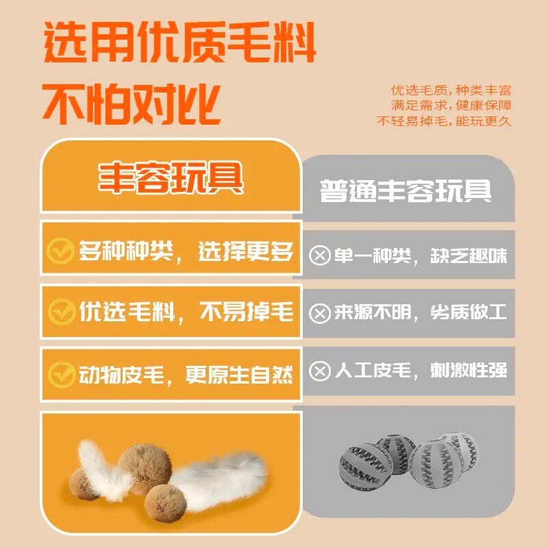 猫玩具兔毛球真兔毛逗猫球棒气味丰容宠物嗅闻大尺寸猫咪静音玩具