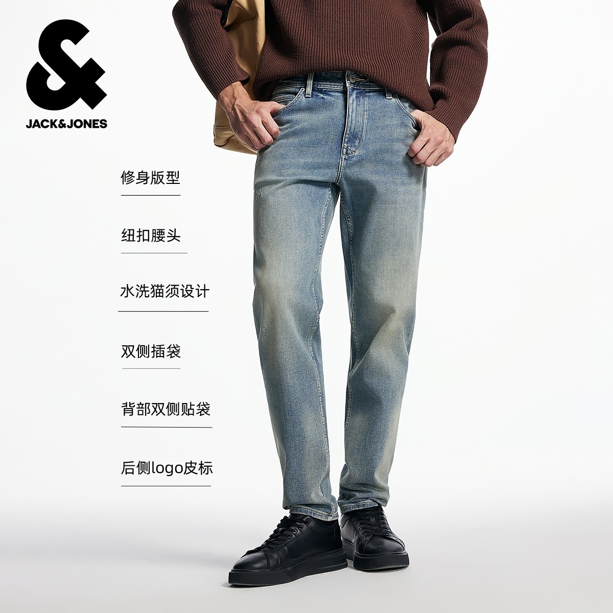 杰克琼斯秋冬季男装牛仔裤长裤子修身版型时尚百搭休闲下装男款