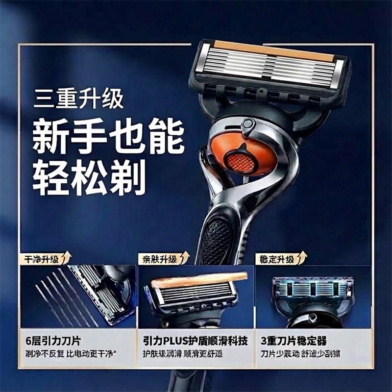 2026六层刀头刮胡刀6层不锈钢刀片男士手动刮毛刀刀架6层剃须引力