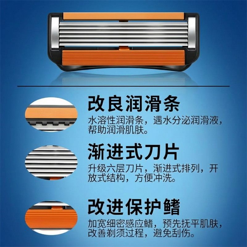 进口6层刀片剃须刀利亚刮胡刀手动刀片六层刀头男刮毛刮头胡子刀