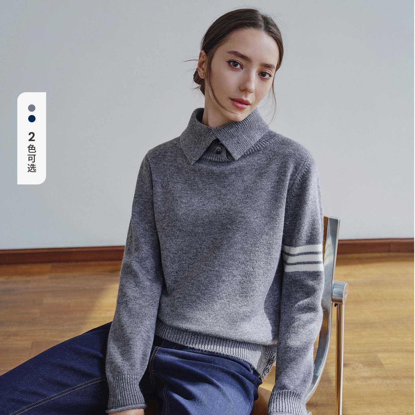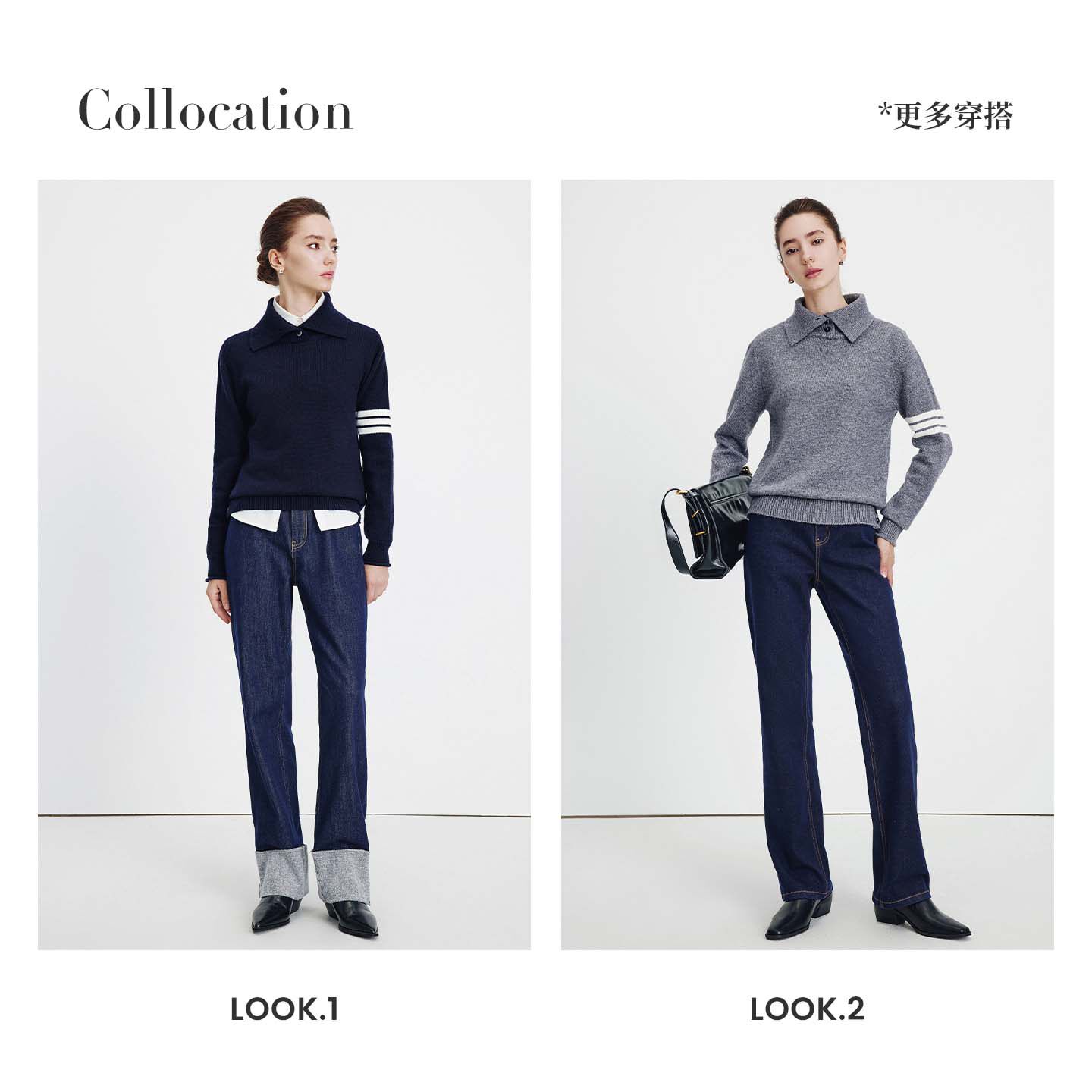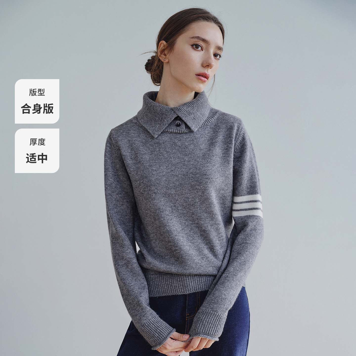 Navigare意大利小帆船精纺羊毛高弹针织衫女秋冬新款翻领休闲毛衣