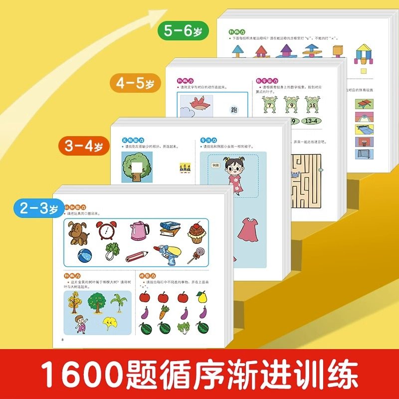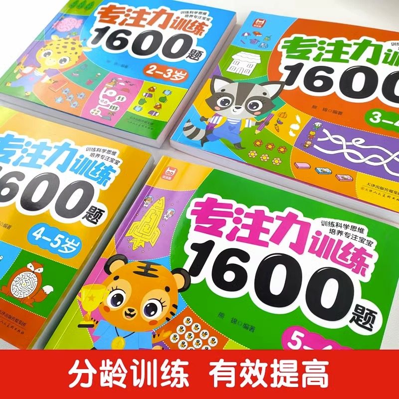 专注力训练1600题2-3-4-5-6岁幼儿园宝宝早教启蒙思维训练逻辑迷宫找不同练习书儿童益智奥数全脑开发绘本游戏书认知培养