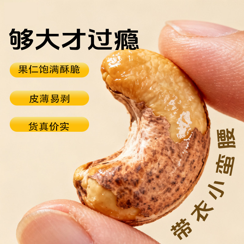 带皮腰果2025新货原味盐焗紫衣干果仁越南紫皮坚果零食官方旗舰店