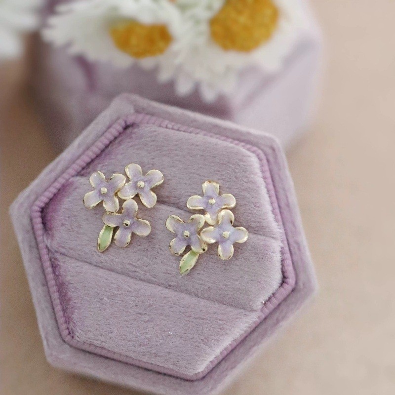 夏天甜美紫色珐琅花朵仙气耳环森系艺术生耳钉女小巧精致耳饰品