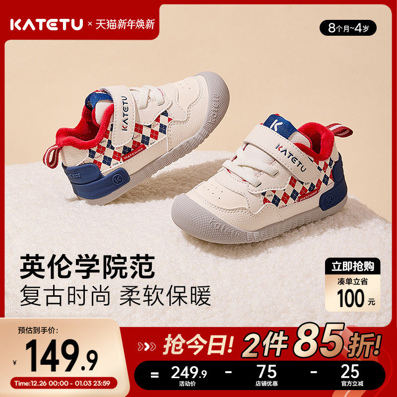 卡特兔婴儿学步鞋秋冬幼儿园小白鞋室内鞋保暖宝宝防滑儿童棉鞋