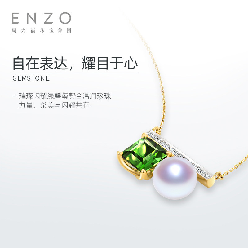 ENZO「商场同款」18K金海水珍珠碧玺钻石项链EZT457新春礼物