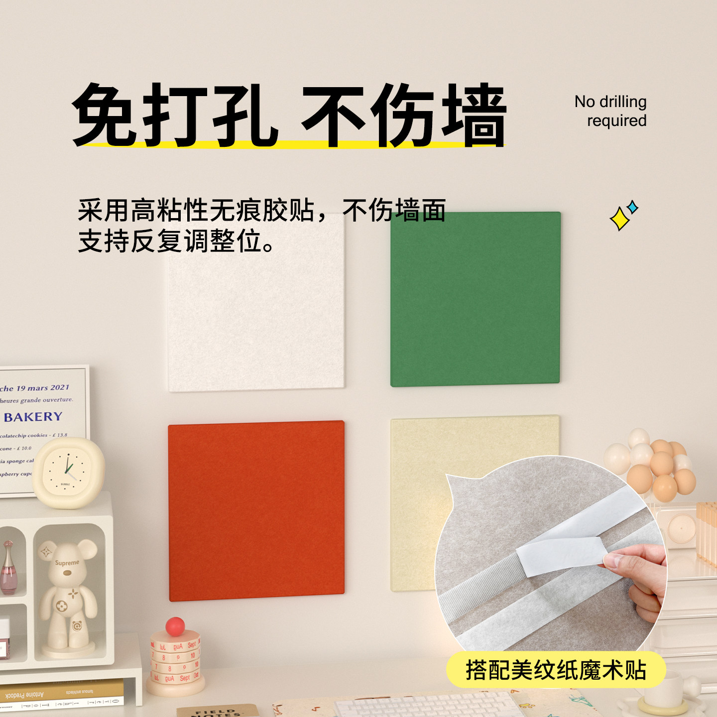 格里旺毛毡板照片墙客厅沙发背景墙装饰免打孔不伤墙玄关留言板美式简约墙贴软木板创意彩色多巴胺自粘相框