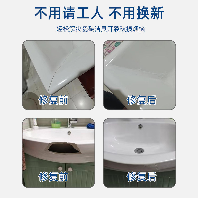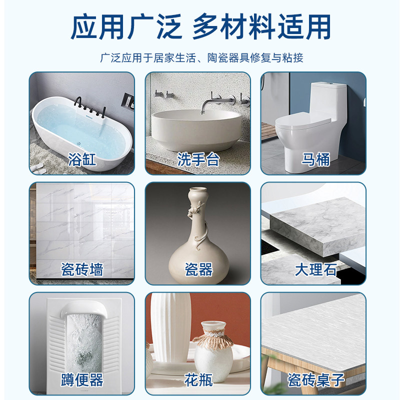 陶瓷修补剂釉面瓷砖洗手池修补陶瓷花盆茶杯茶具水池裂缝修复胶防水粘大理石专用胶地砖防水耐高温白色修补剂