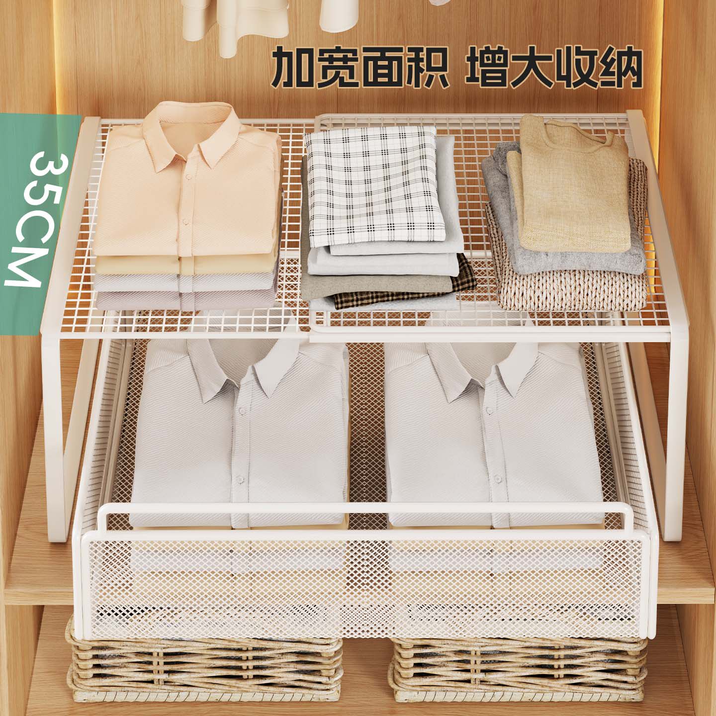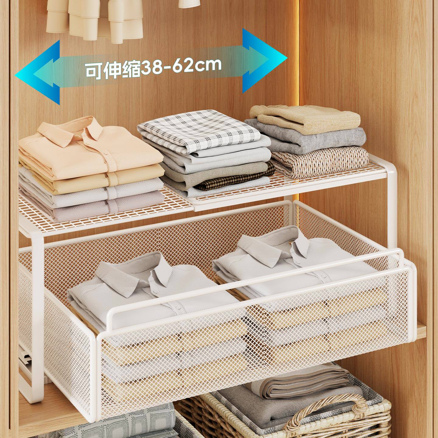 衣柜分层隔板柜子橱柜内可伸缩置物架收纳神器衣橱鞋柜隔断整理板
