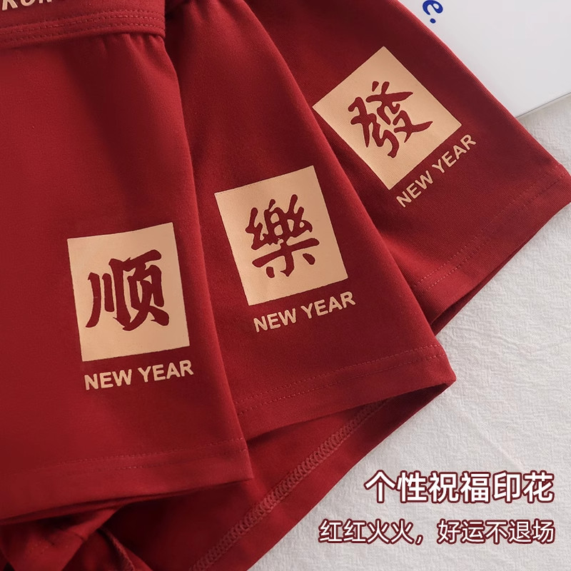 本命年红色男士内裤男款纯棉蛇年红裤衩结婚四角短裤青少年平角裤