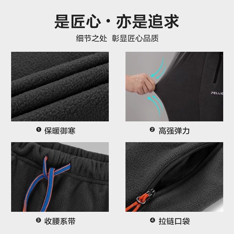 伯希和户外抓绒裤女秋冬保暖摇粒绒卫裤宽松休闲长裤男直筒运动裤