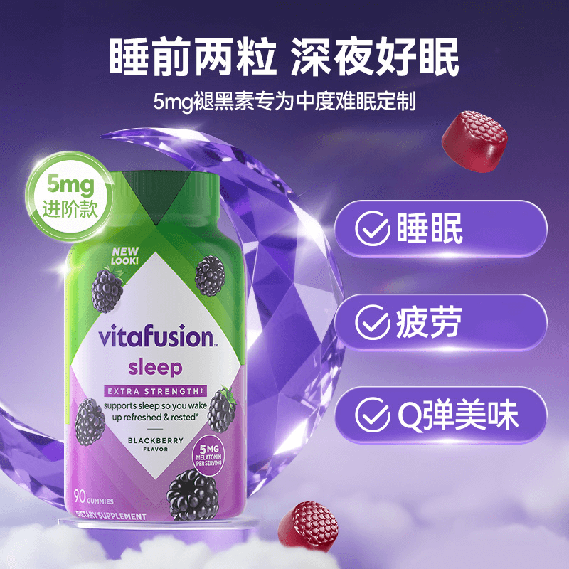 【自营】vitafusion5mg褪黑素软糖90粒难眠睡觉褪黑素睡眠软糖