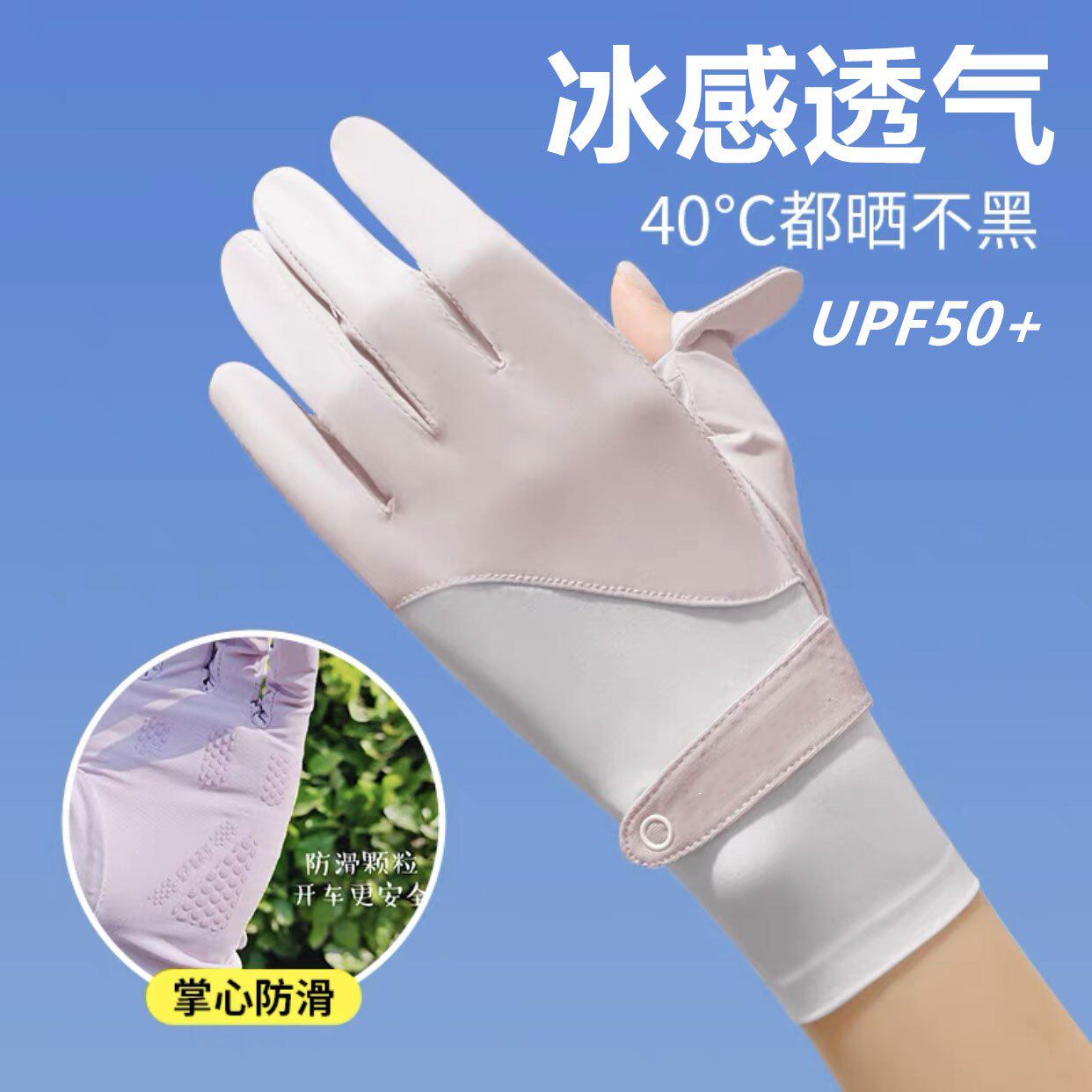 冰丝防晒手套女士夏季户外防紫外线薄款透气骑行手套防滑触屏漏指