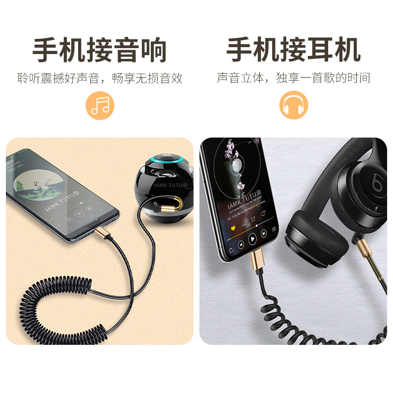typec转3.5mm车载AUX音频线汽车音响适用扁孔手机电脑头戴式耳机