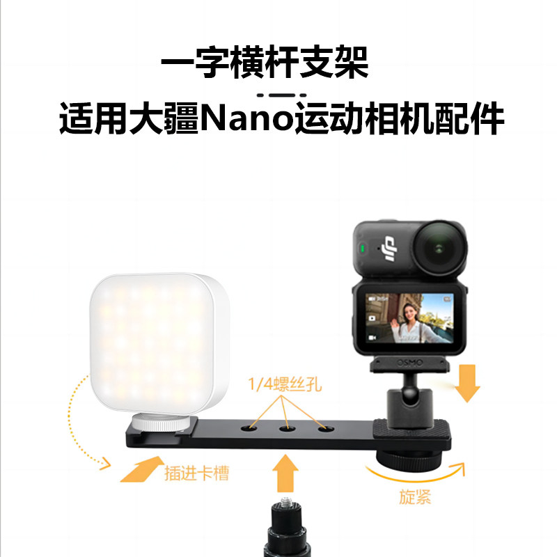 DJI大疆 osmo Nano运动相机拓展一字横杆支架大疆pocket3扩展手机固定支架摄影配件补光灯支架铝合金通用支架