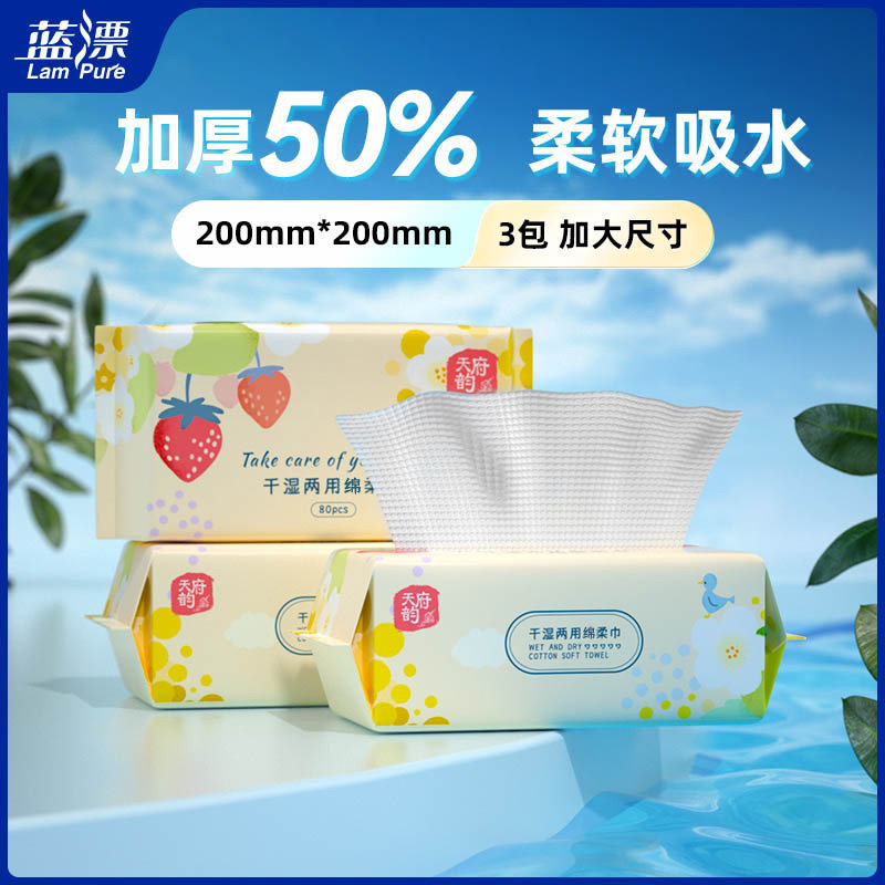 80抽加大绵柔巾干湿两用加厚洁面巾卸妆巾柔韧洗脸巾亲肤柔软天府