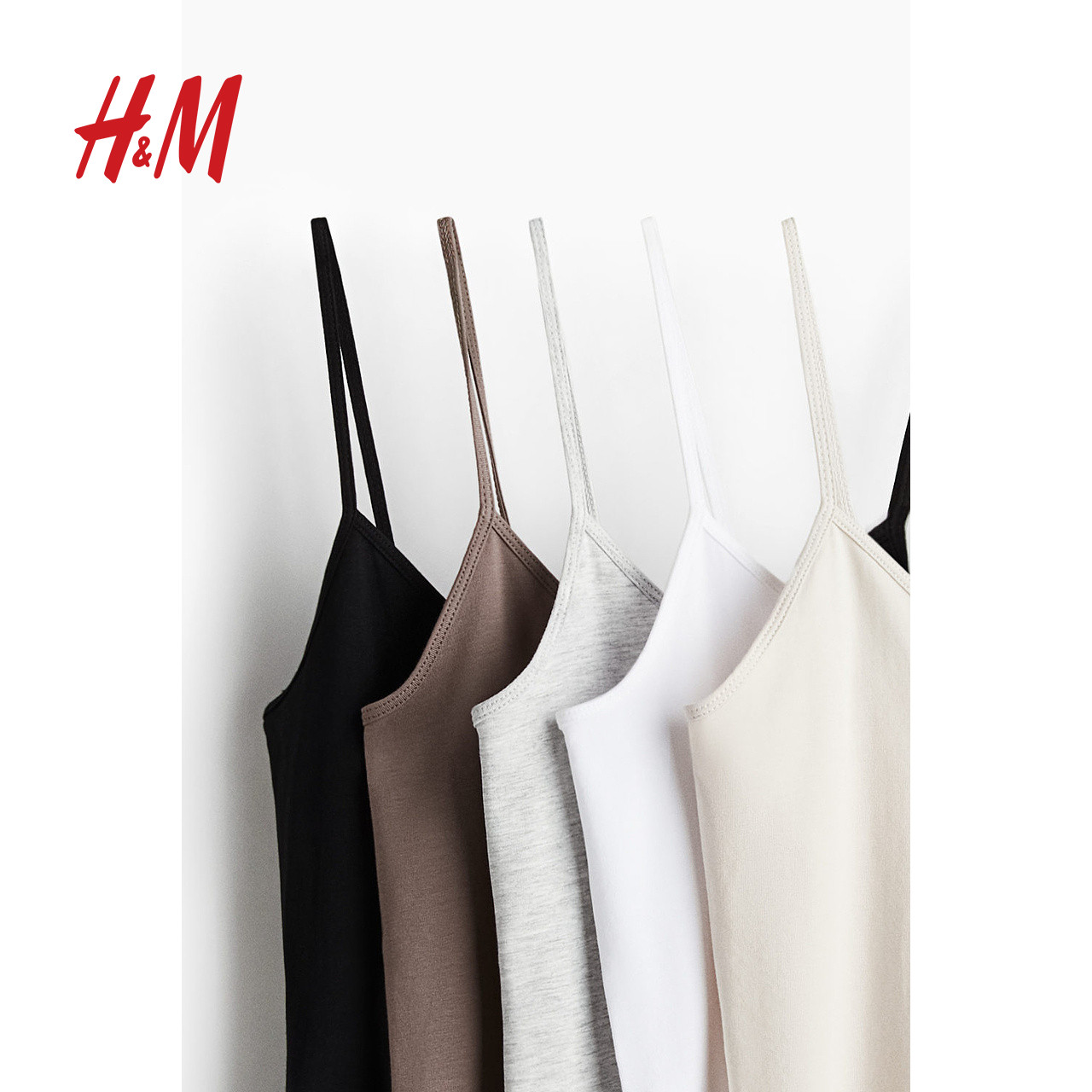 HM女装2025冬季新款时尚休闲柔软修身V领无袖吊带上衣女1080623