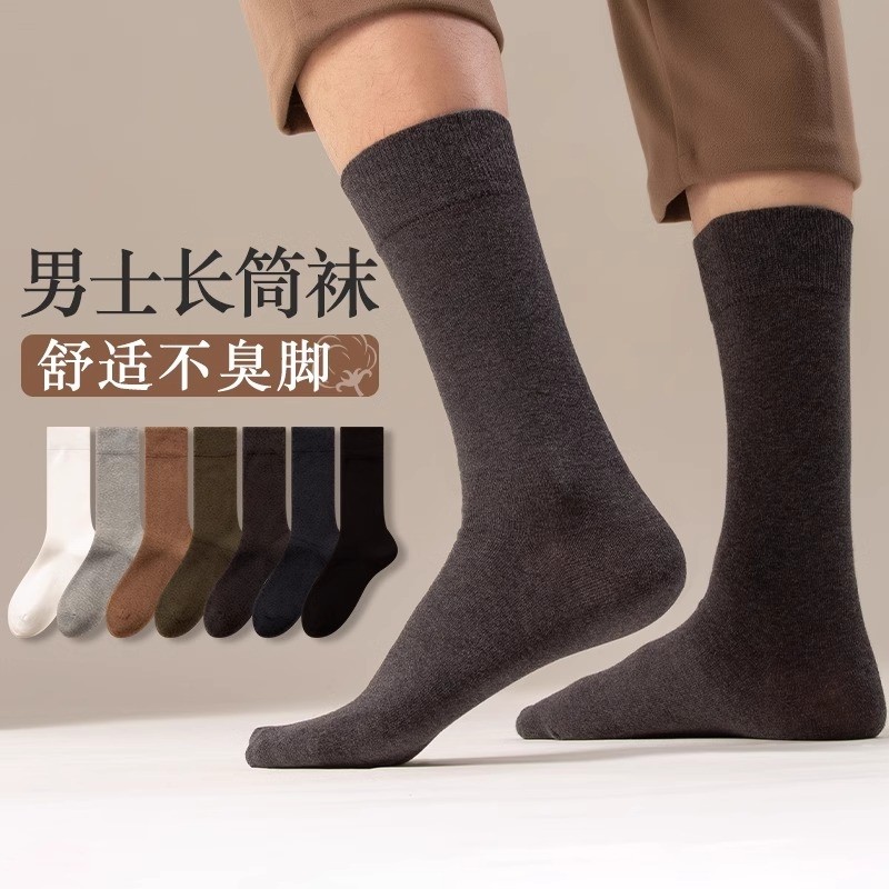 诸暨袜子男款长筒秋冬季防臭中筒袜透气运动男士保暖高筒长袜小腿