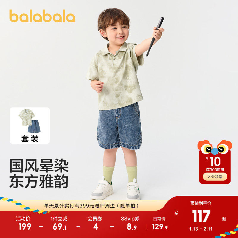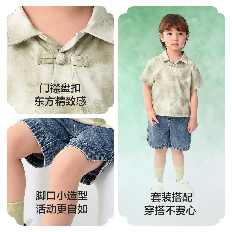 巴拉巴拉童装儿童短袖POLO衫套装2025夏季新款男大童薄款新中式潮