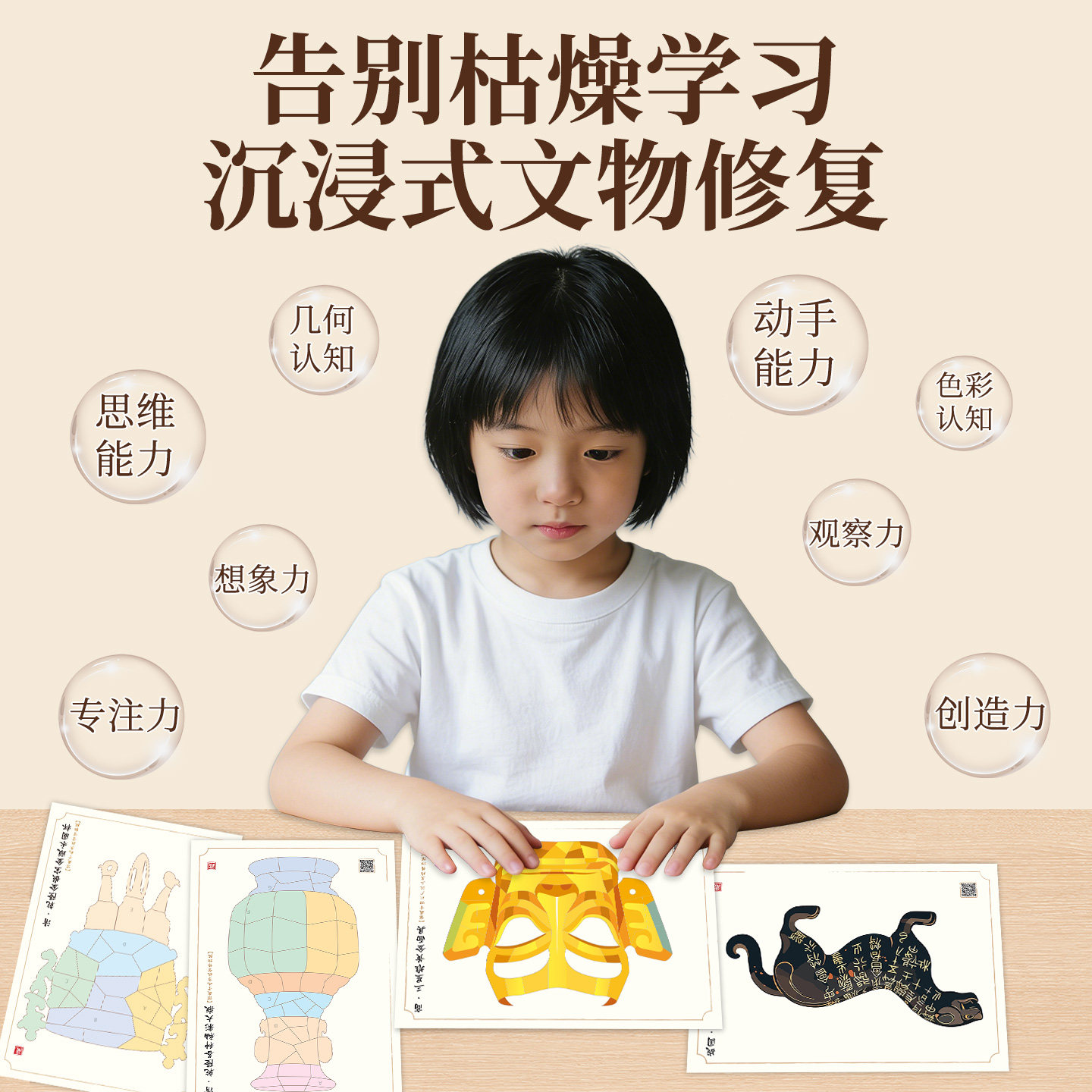 文物修复师拼贴画手工造景3D贴纸文物修复儿童益智玩具手工diy拼贴画古董贴纸本古董修复场景贴纸宝藏安静书
