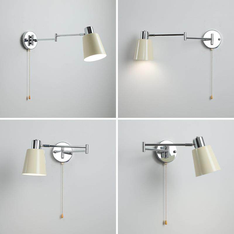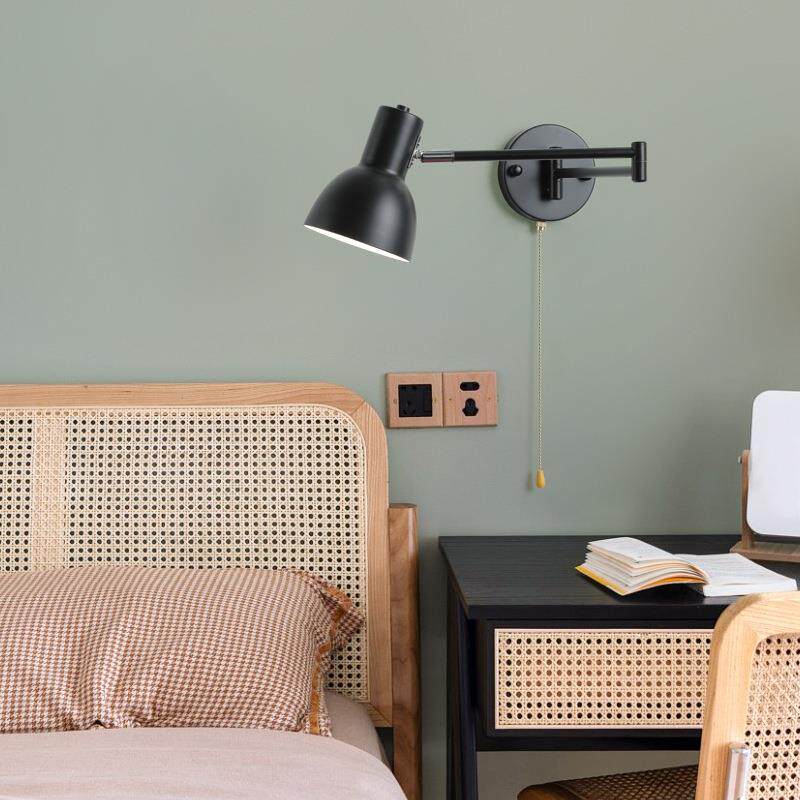 北欧简约复古摇臂可位移床头壁灯中古vintage书房伸缩折叠阅读灯