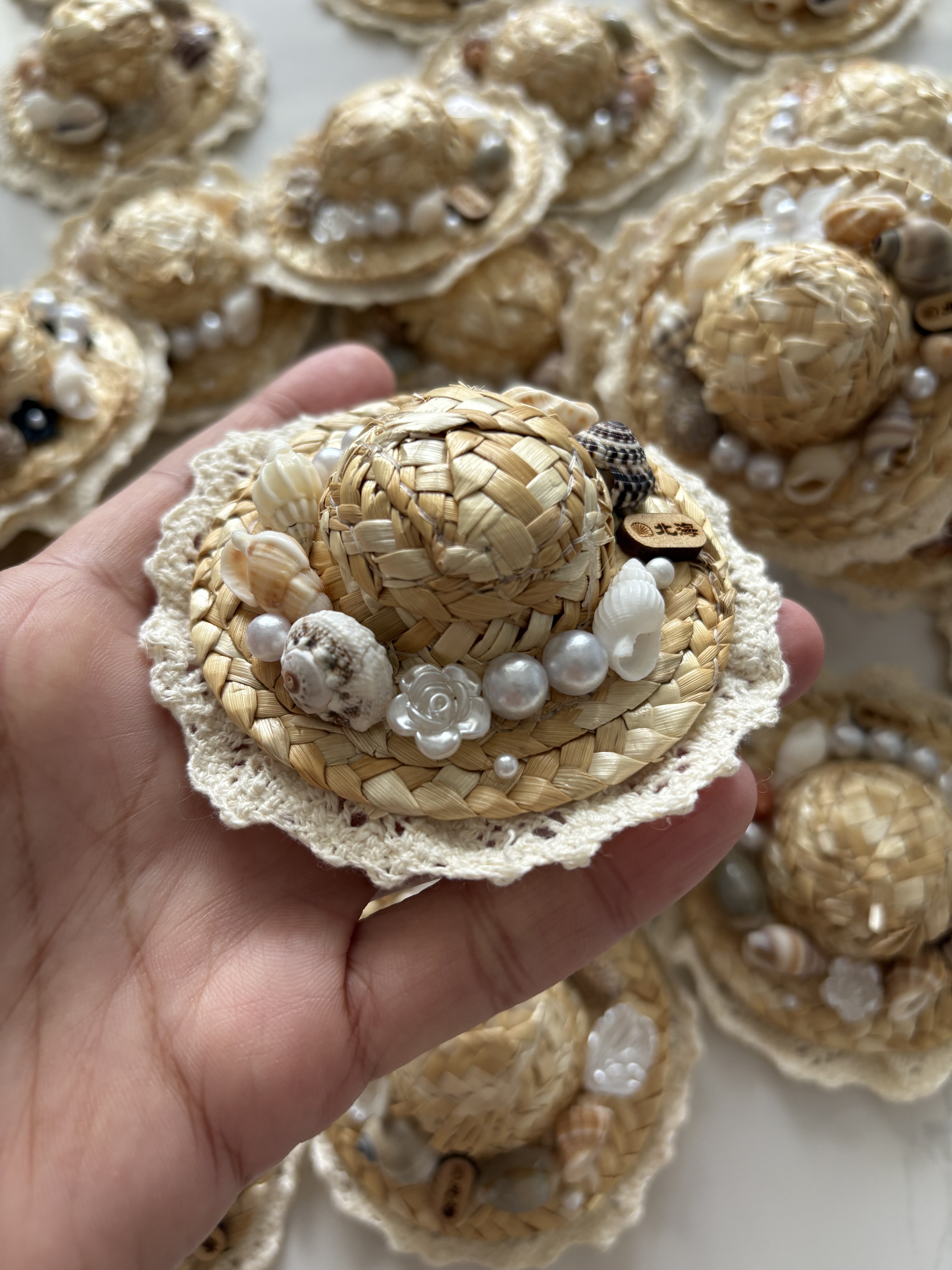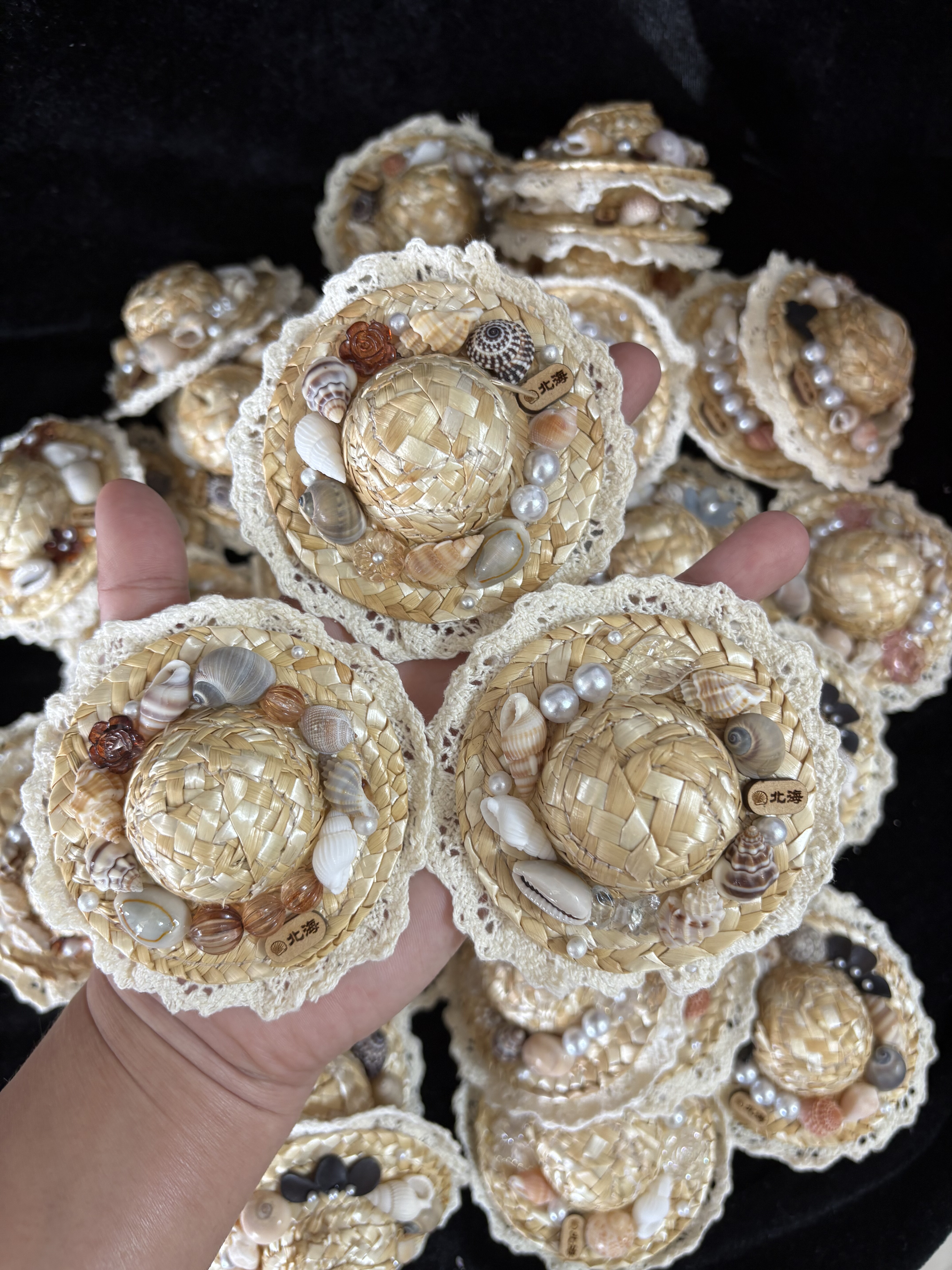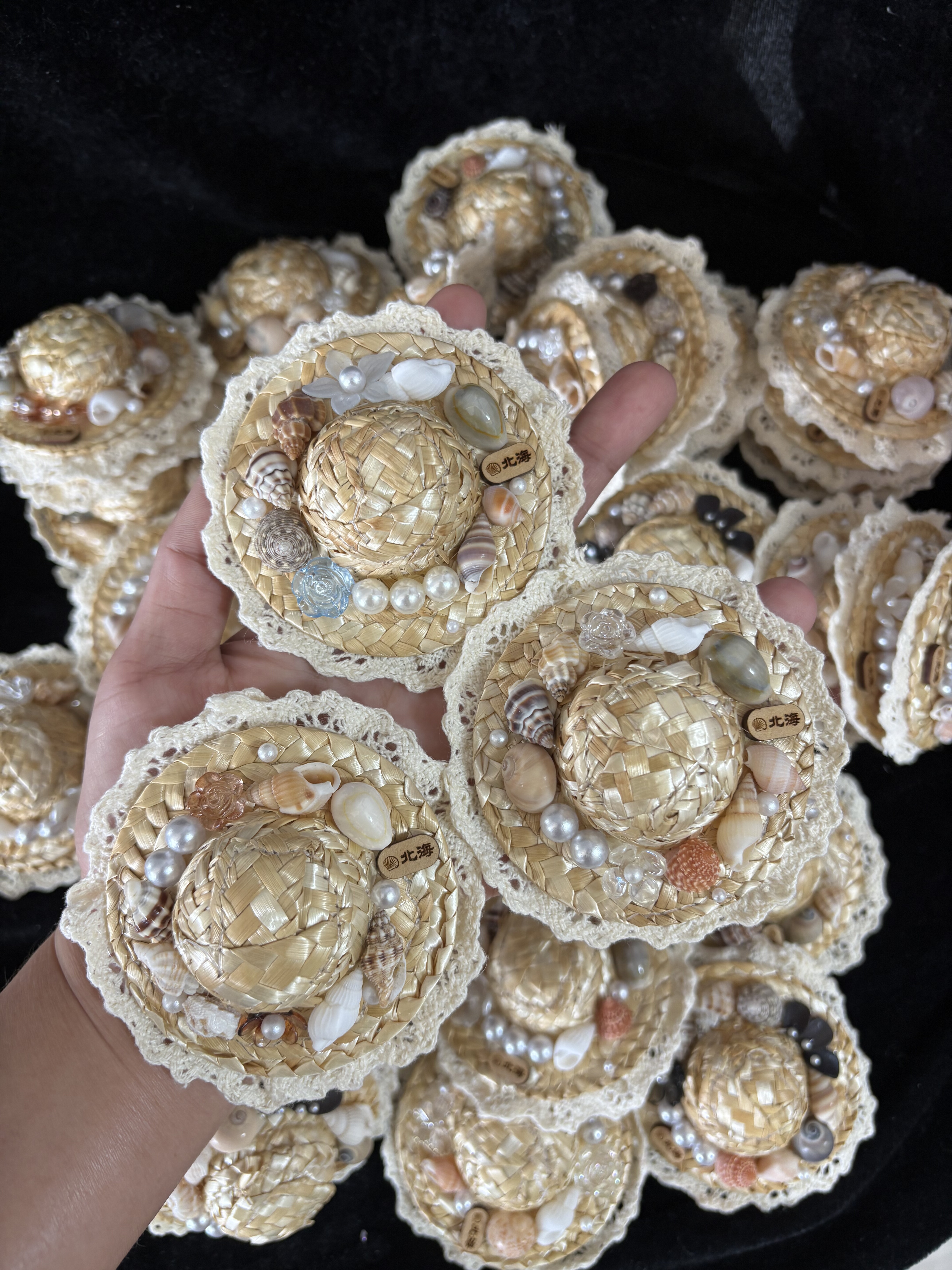 北海旅行好物 北海文创 手工贝壳冰箱贴 蕾丝草帽款