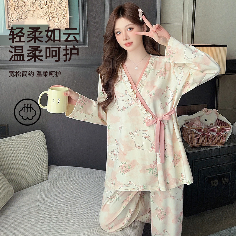 月子服纯棉春秋冬季产后12月份孕妇睡衣可外穿喂奶产妇哺乳家居服