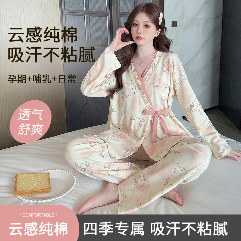 月子服纯棉春秋产后8月份9产妇孕期哺乳期睡衣夏季薄款孕妇家居服