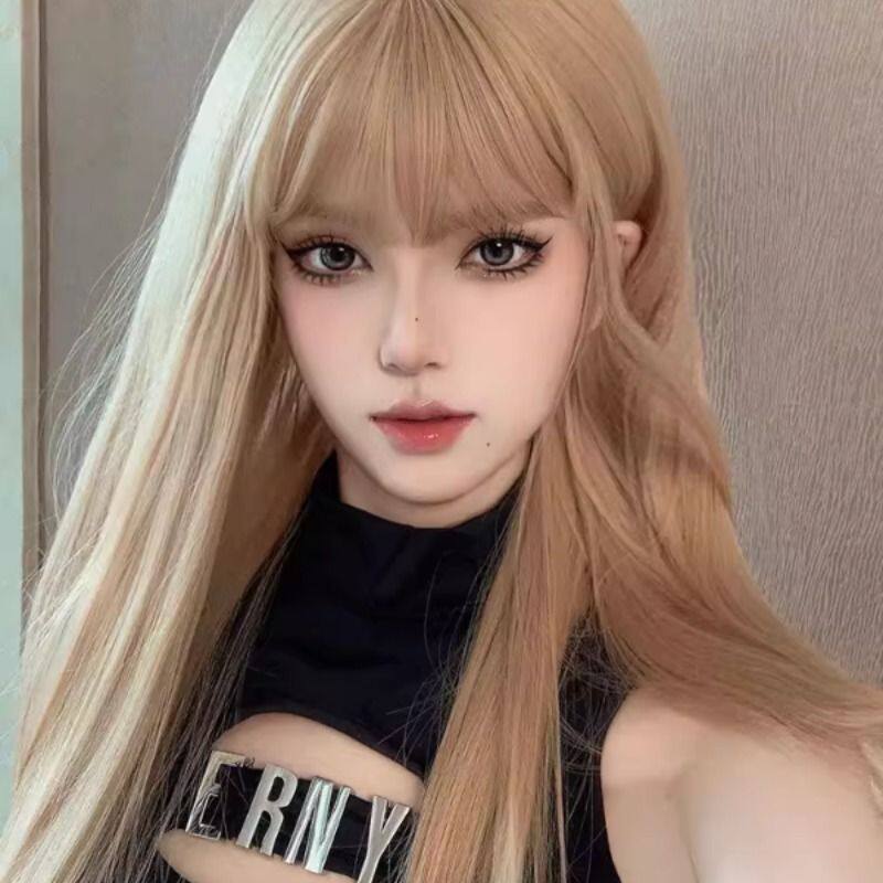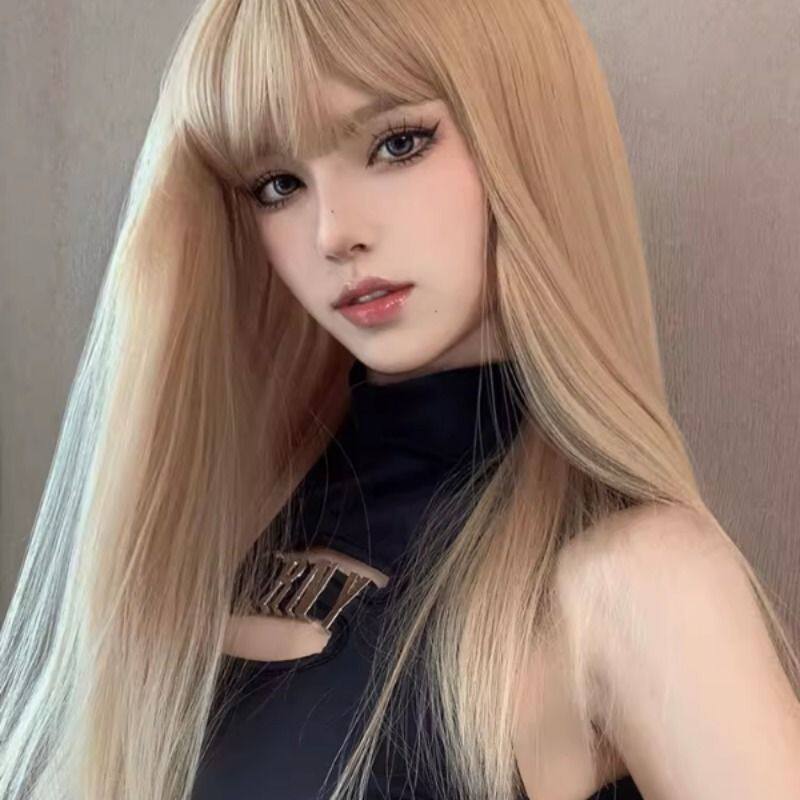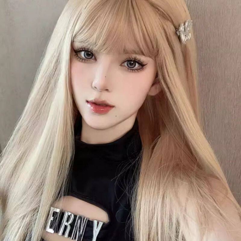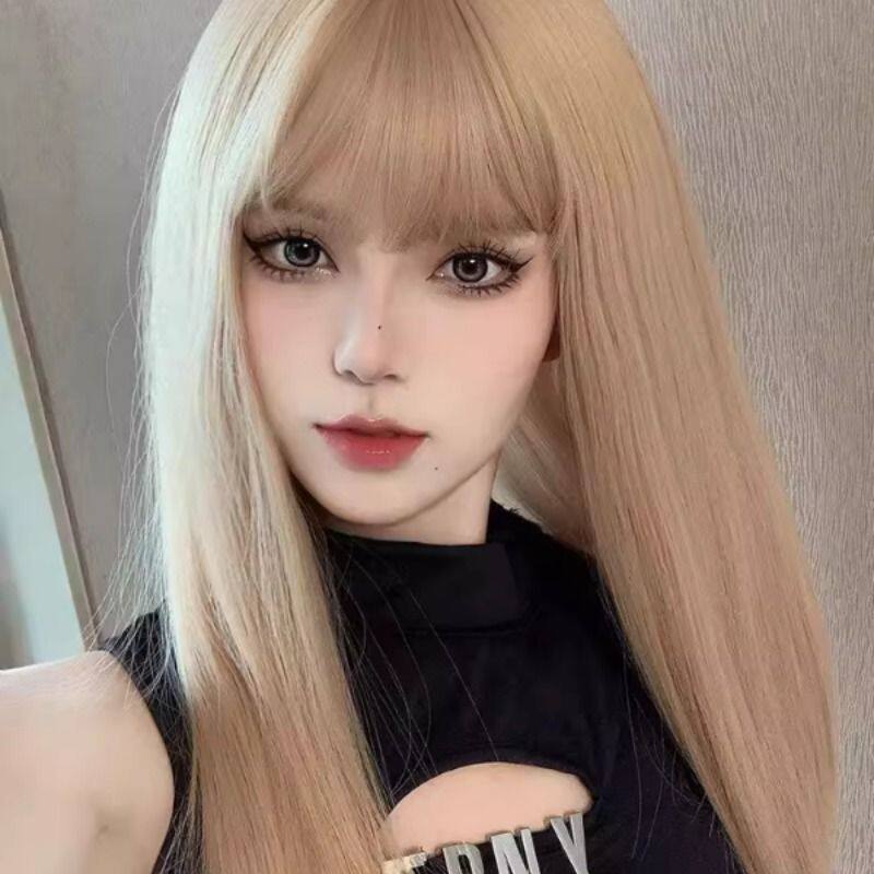 假发女长直发日系网红金色齐刘海日常jk逼真头皮全头套可爱lolita