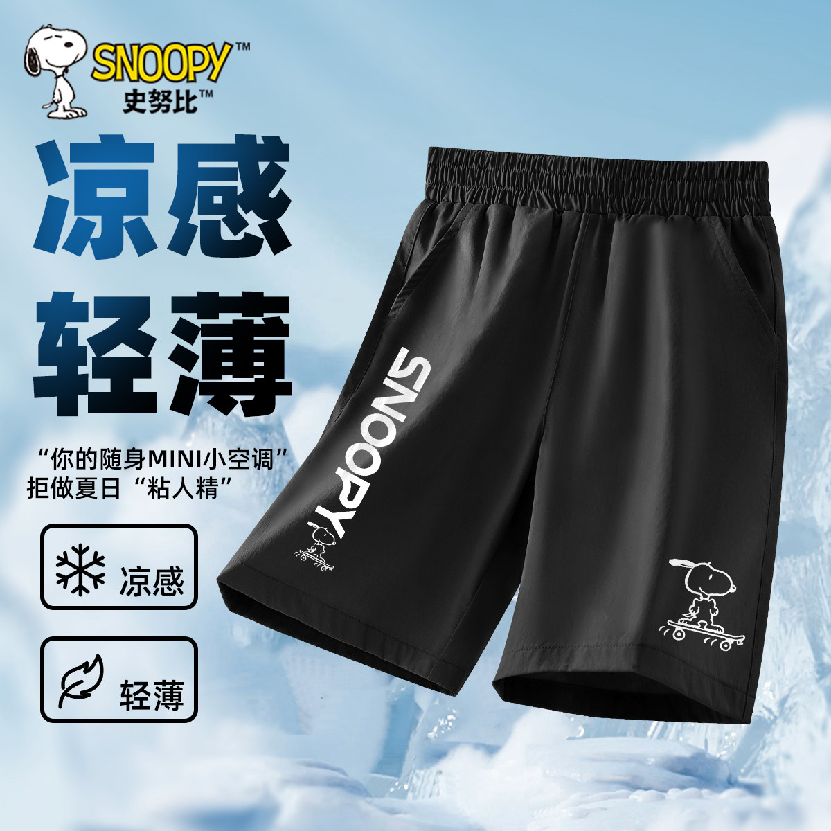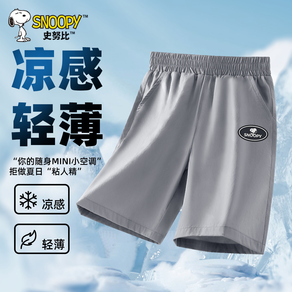 史努比男童短裤夏季薄款2025新款五分裤男孩冰丝运动裤儿童速干裤