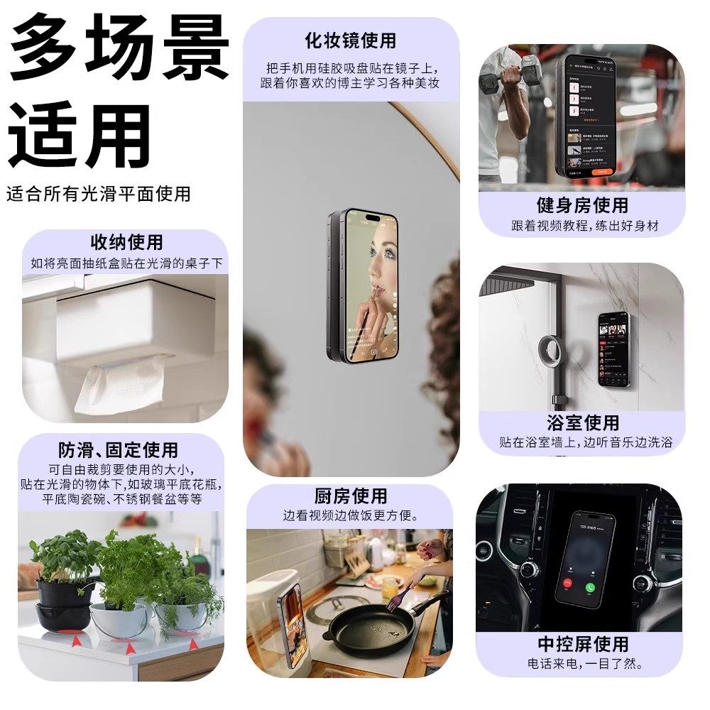 手机吸盘手机壳支架双面硅胶强力固定防滑墙面浴室镜子粘墙神器自拍健身浴室厨房多功能背贴吸附平板2025新款