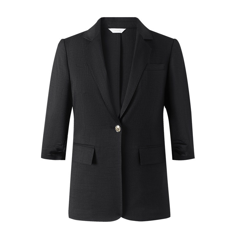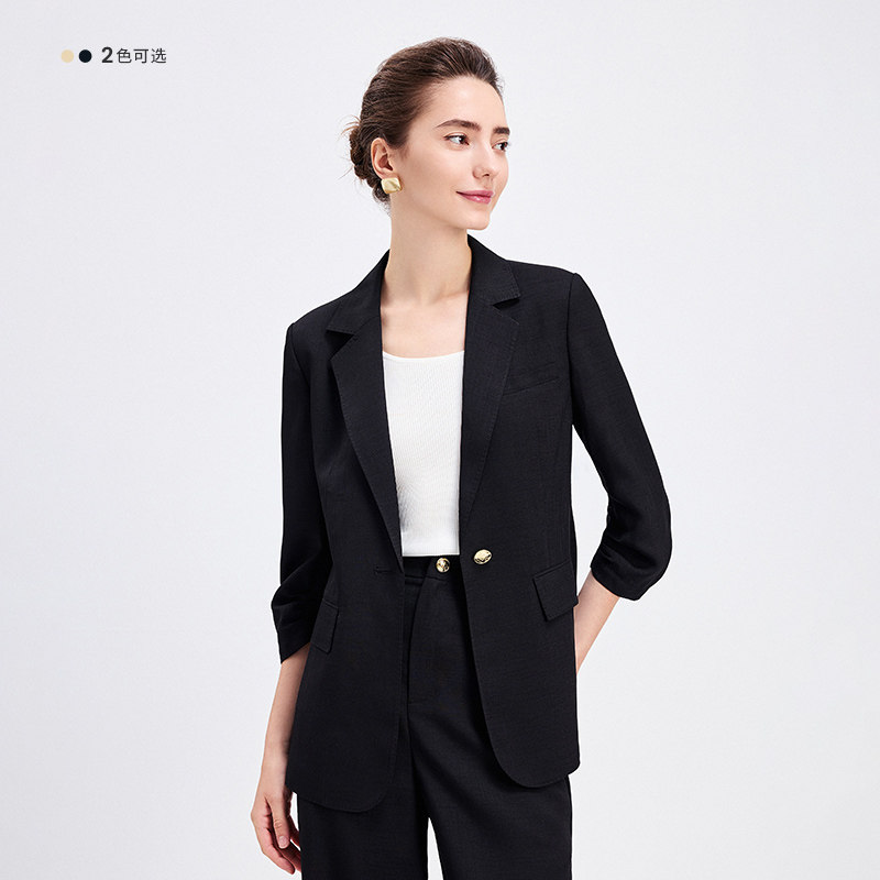 芝美日禾 极简弹力针织小个子西装外套女单层修身一粒扣职业正装