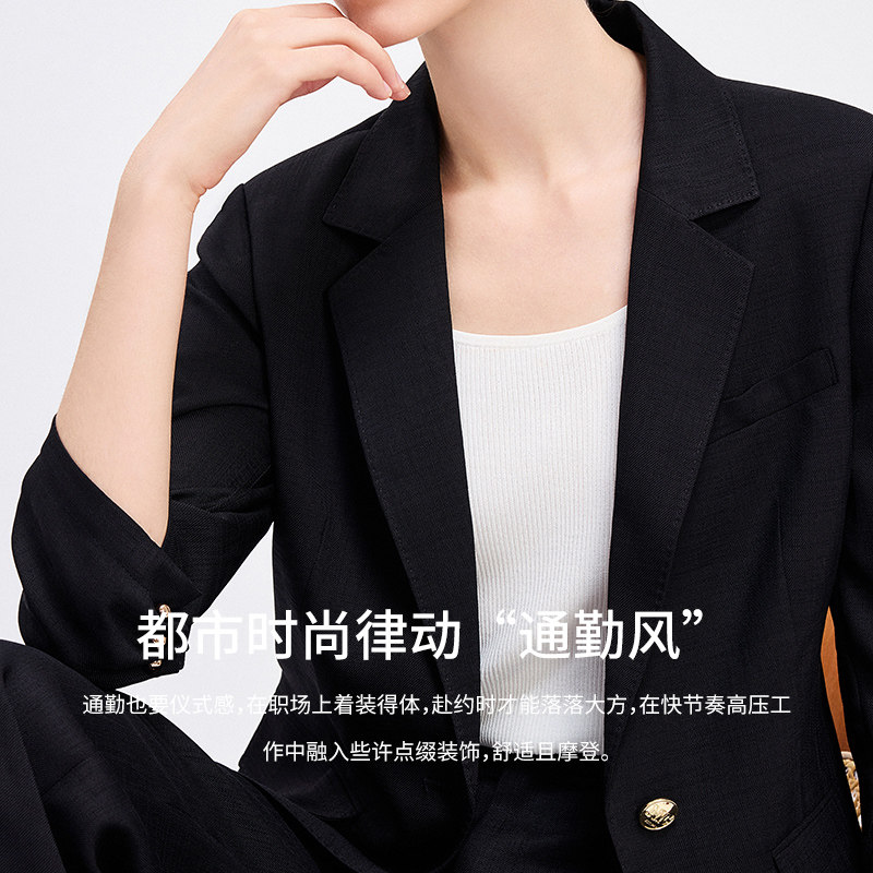乔妮塔女装2025春秋新款50%羊毛含量高级感双排扣西服小西装外套