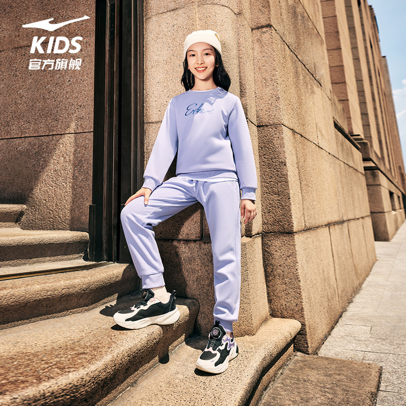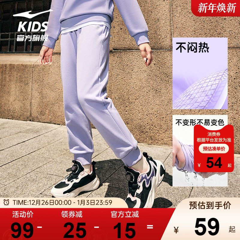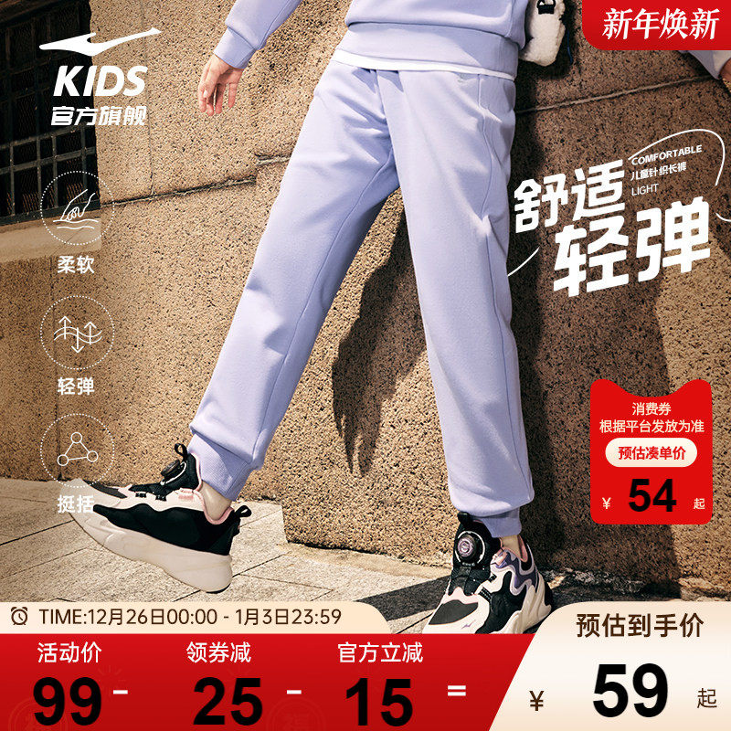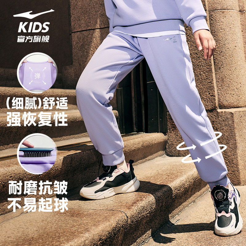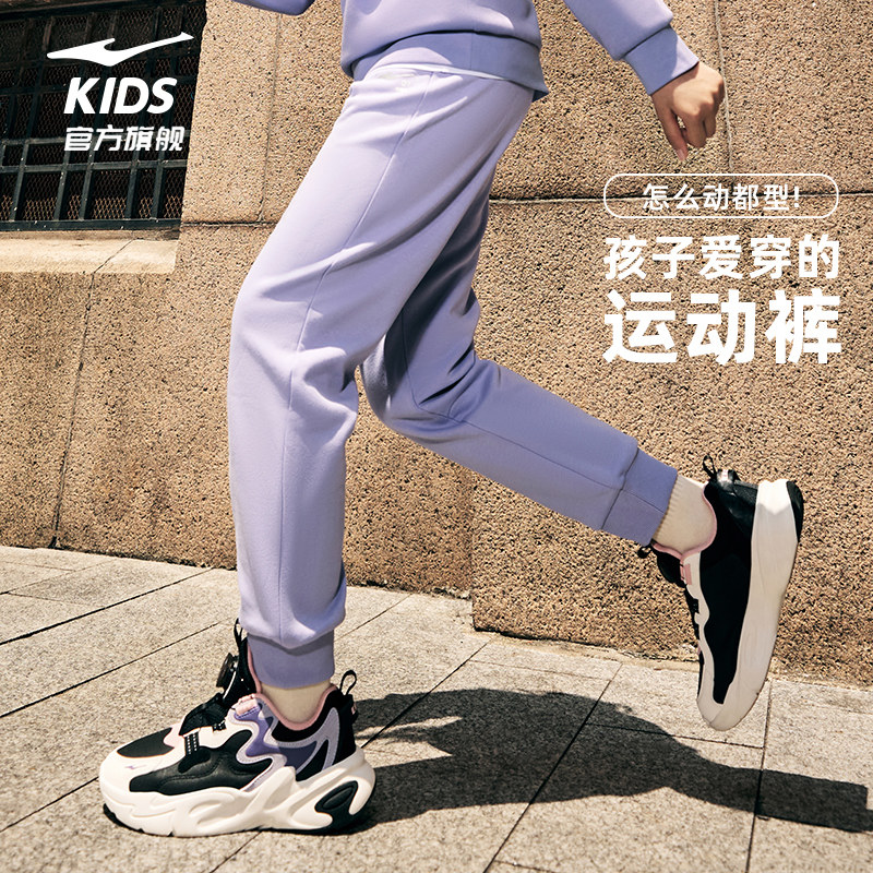 鸿星尔克童装儿童运动裤女童裤子秋冬季卫裤大童学生针织加绒长裤