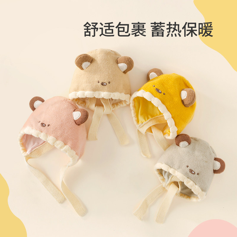 婴儿帽子秋冬季宝宝防风护耳帽新生儿婴幼儿初生小胎帽冬季针织帽