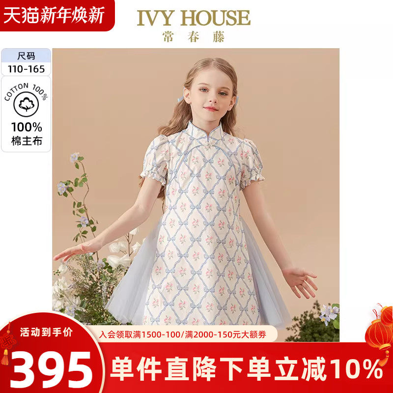 IVY HOUSE常春藤儿童装女童连衣裙夏款 中式国风改良旗袍裙亲子装