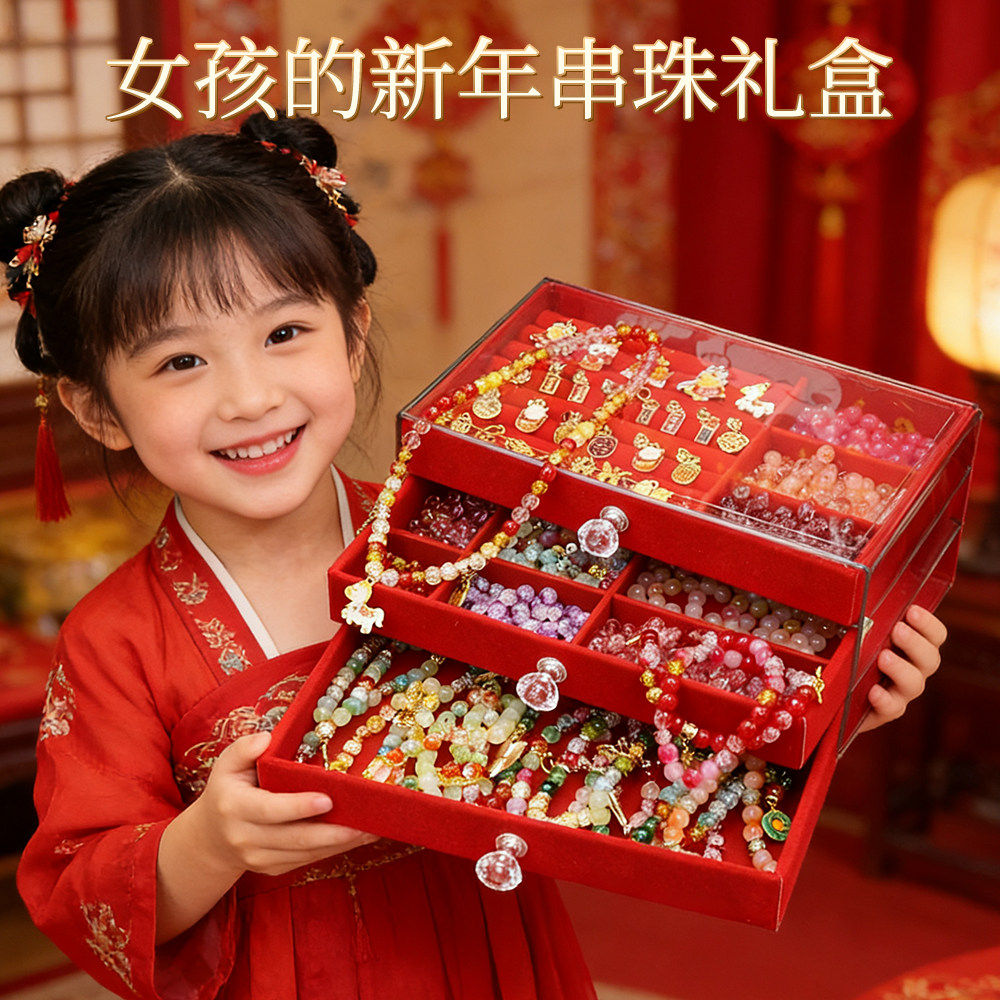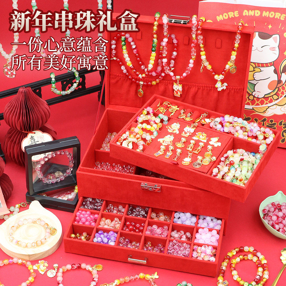 女生首饰礼盒套装串珠女孩礼物8一10岁9女童儿童玩具发饰手链项链