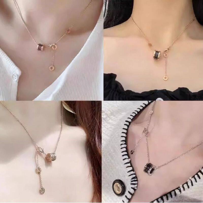 小蛮腰弹簧项链男女V金镀18K黑陶瓷钻小红人慈善款吊坠不掉色金色