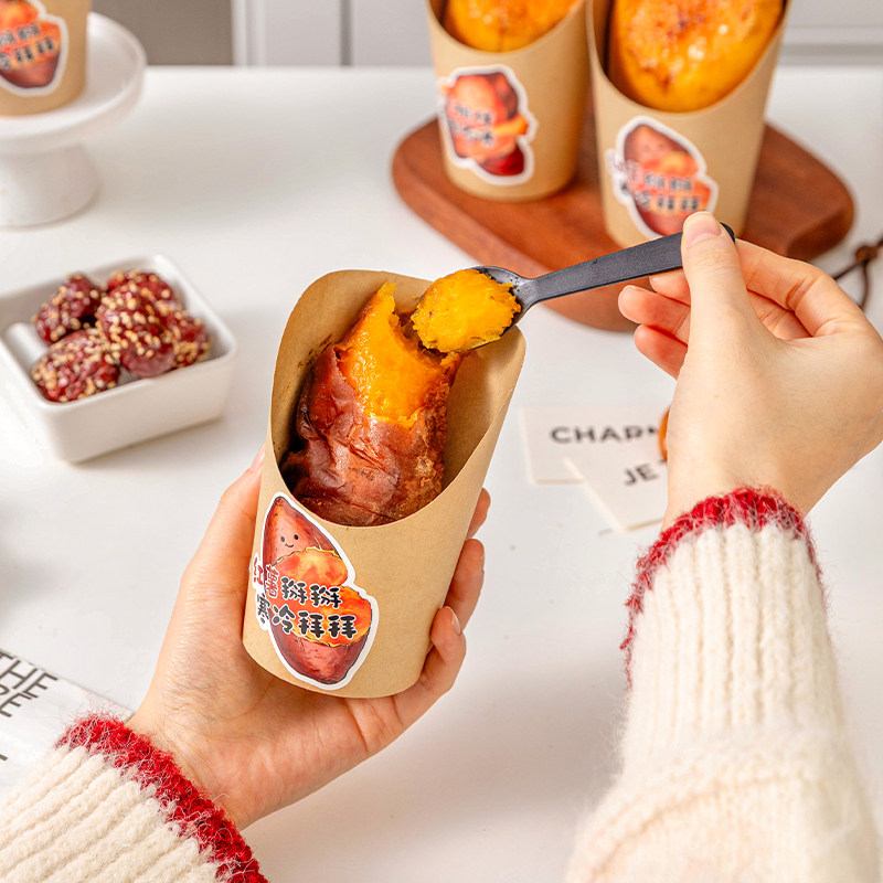 烤红薯包装盒打包糖炒栗子外卖子一次性免折叠蜜薯专用地瓜牛皮纸