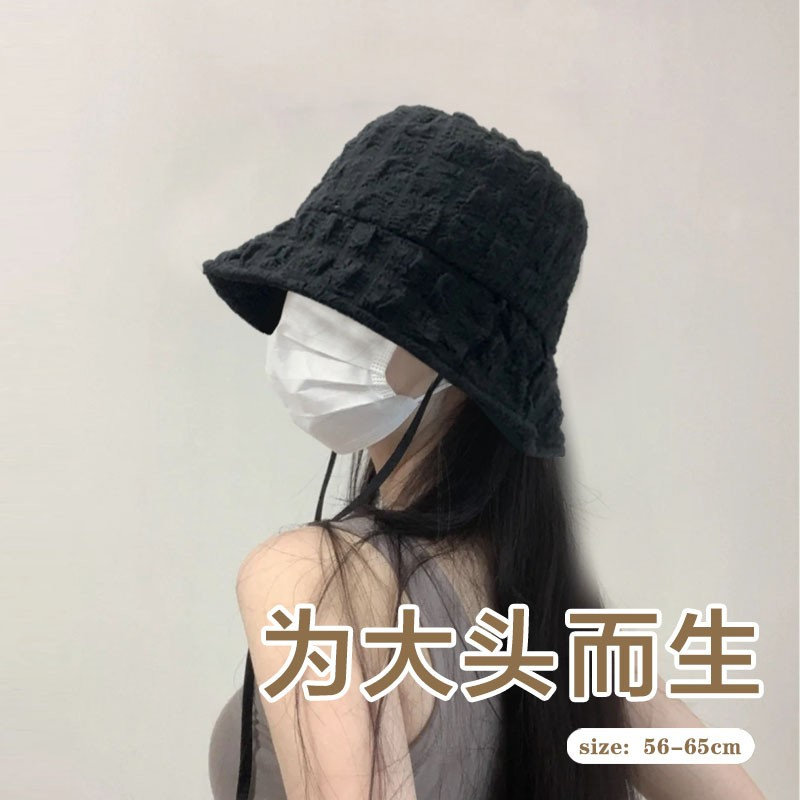 日系可折叠夏季条纹渔夫帽女新款长防晒帽子时尚盆帽大头围太阳帽