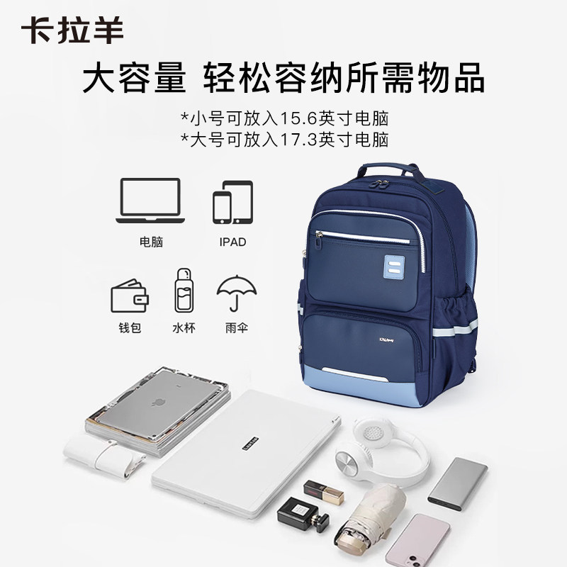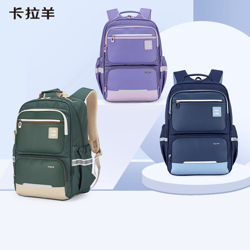 卡拉羊中学生书包减负风琴书包男女生青少年书包小学生书包儿童双肩包男孩大容量女孩防水书包品牌旗舰正品