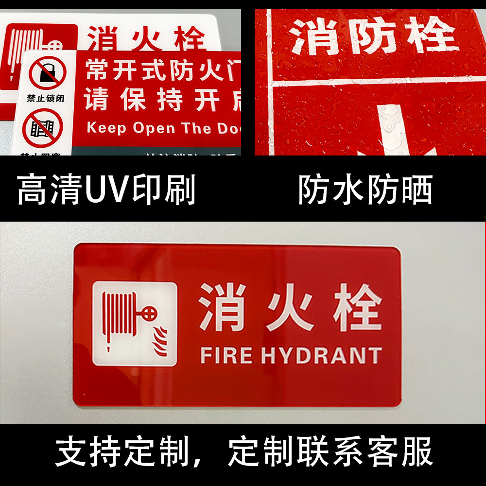 消防栓标识牌标牌亚克力定制酒店消火栓柜门消防箱灭火器提示贴
