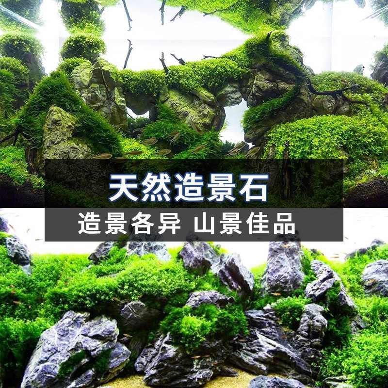 青龙石鱼缸造景底部假山真石头松皮石盆景装饰摆件微景观原石养鱼